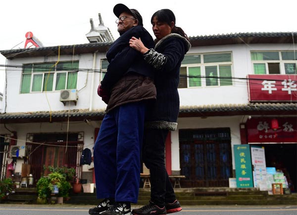 躺在床上、坐在轮椅上,只要超过了半个小时,陆在发就“哎哟哟”直叫唤,他想出去看一看,走一走。于是,就有了陆勤霞每天抱着父亲,让父亲踩在自己脚上一步步走的场景。