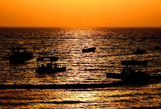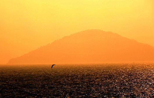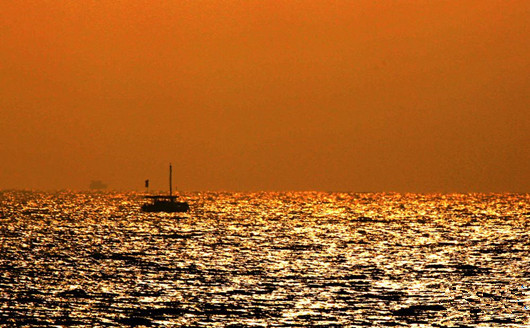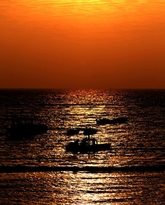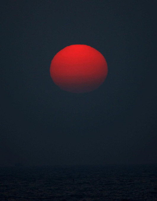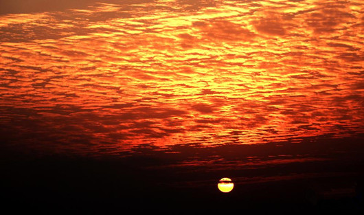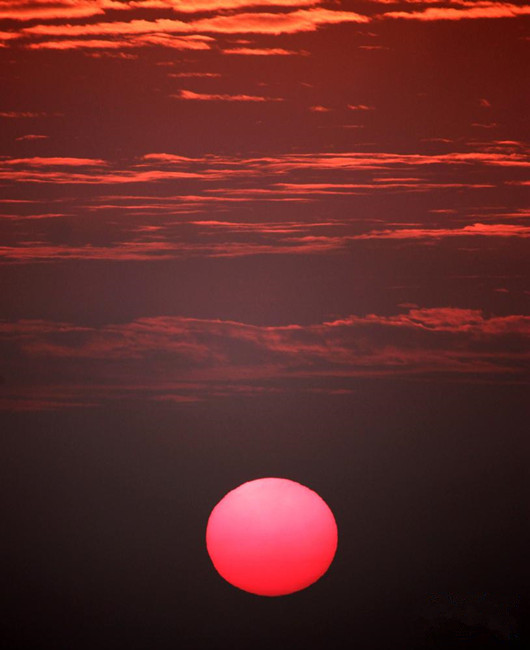 2016年12月28日,受较强冷空气影响,合肥雨后天晴,气温陡降。高积云如鳞飘在天空,太阳从湖面升起,像红色的灯笼高悬。金色的霞光洒在湖面上,与湖水相映照如画卷一般美丽。(新华网)